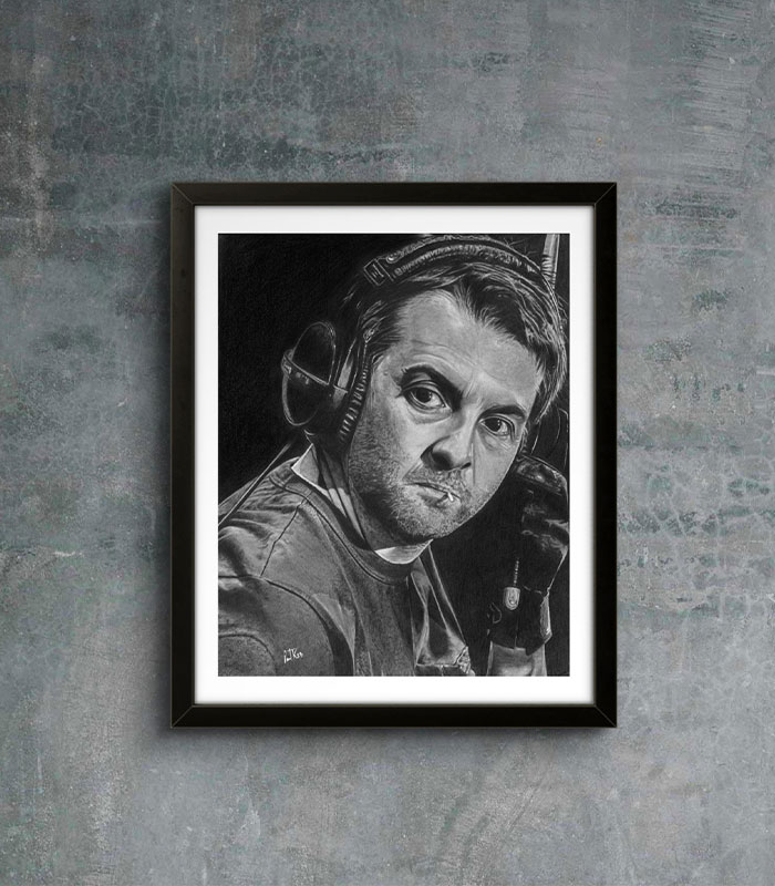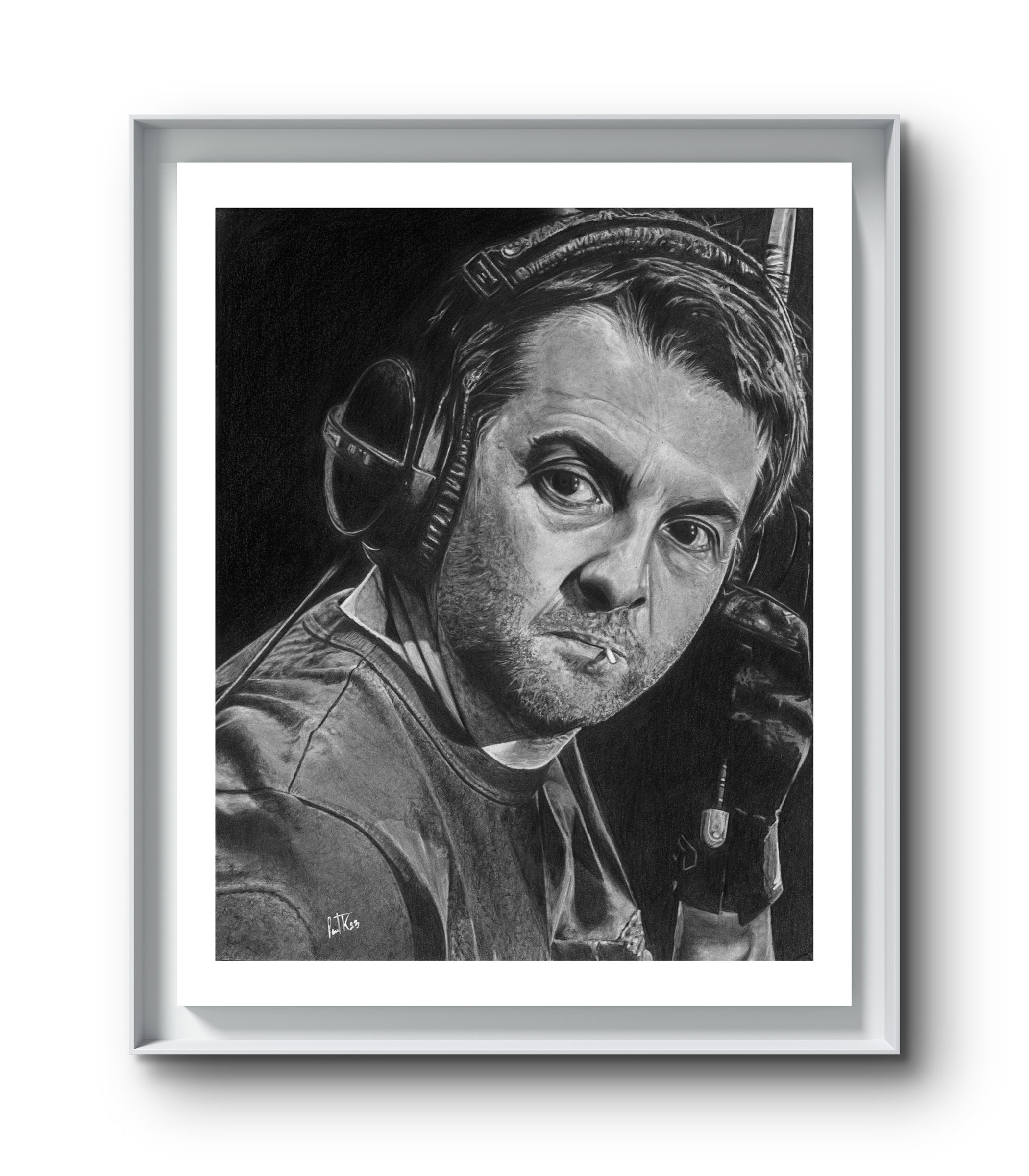This is a print of a graphite drawing I did of Sean Moore, Manic Street Preachers. I liked the intencity of Sean in this studio study, what a fantastic drummer