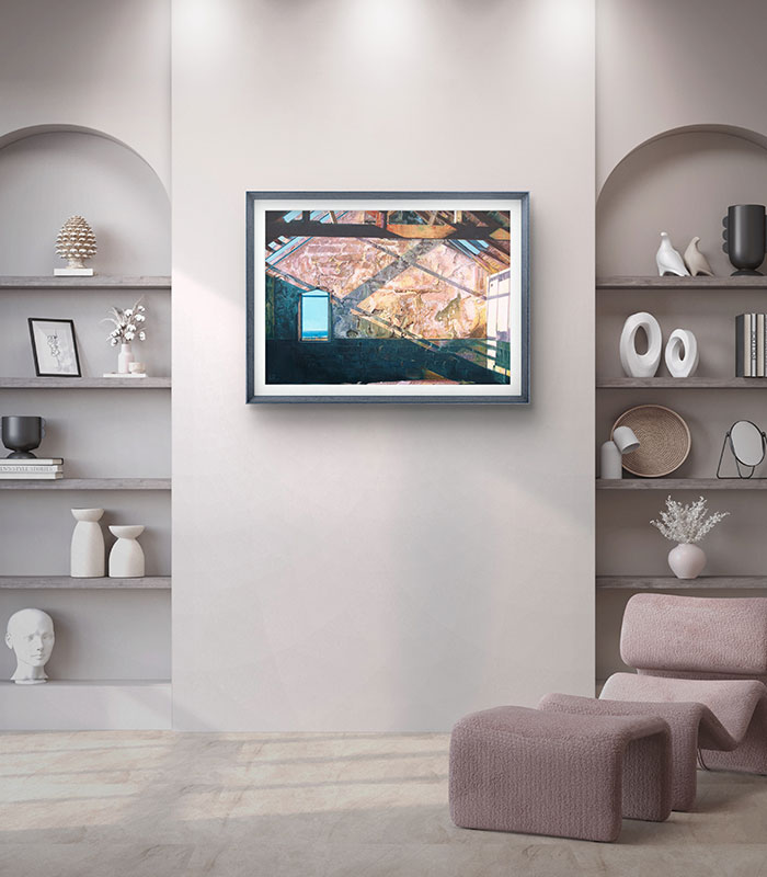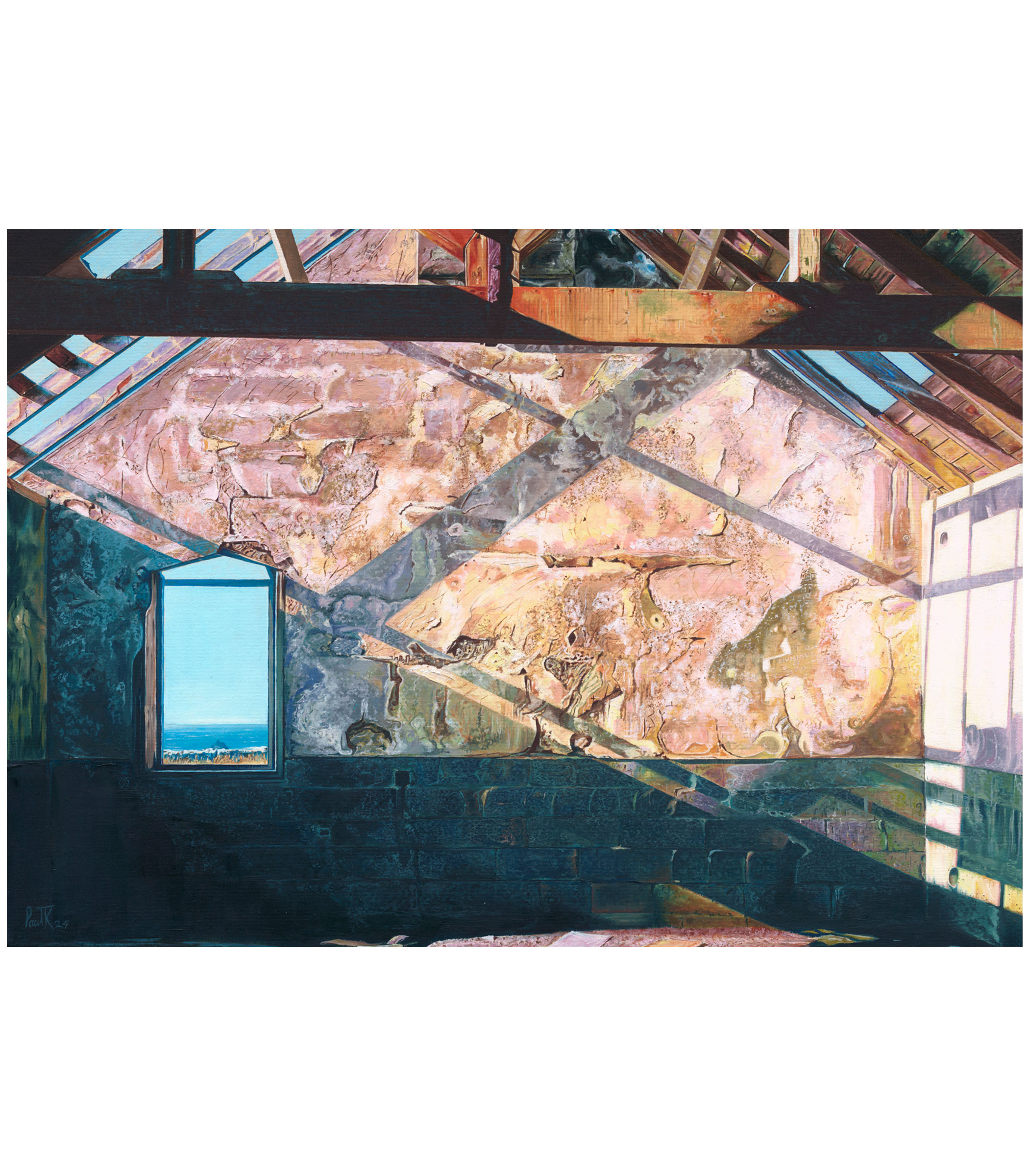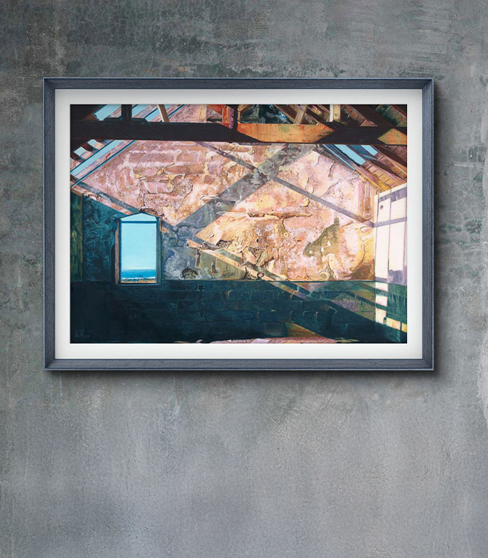 Shadowplay is an Original Oil on Board Painting based on a visit to ‘The Old Schoolhouse’ in Dunquin County Kerry, Ireland. It was built as part of the set of Ryan’s Daughter. This is a classic film starring Robert Mitchum and Sarah Miles. We were staying in the beautiful town of Dingle and this old Schoolhouse is on the coastal drive from Dingle to Dunquin. It is a magical and wonderful area to drive. I was struck by the way the sunlight lit up this old building. I was also fascinated by the window looking out to the sea and I could imagine the pupils daydreaming about the endless possibilities across the vast ocean. Please contact me for more details